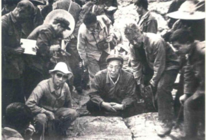 1978年,刘宝珺(中蹲者)与技术人员在贵州进行野外地质调查工作