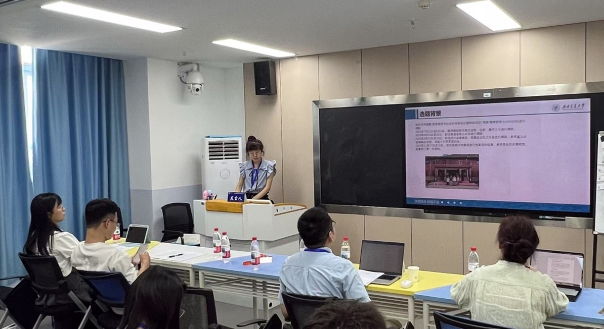 汤茜同学作了以《红色文化资源助推革命老区振兴发展的时代价值和实现路径——以达州市为例》的主题发言。她以四川省达州市为例,聚焦于红色文化资源助推革命老区振兴发展的时代价值和实现路径。她认为,目前红色文化资源助推发展的过程中存在很多困难,应通过提升红色文化资源宣传力度、打造红色文化产业链、健全红色文化资源内外区域协调发展机制等方式,助力红色文化资源革命老区的振兴发展。