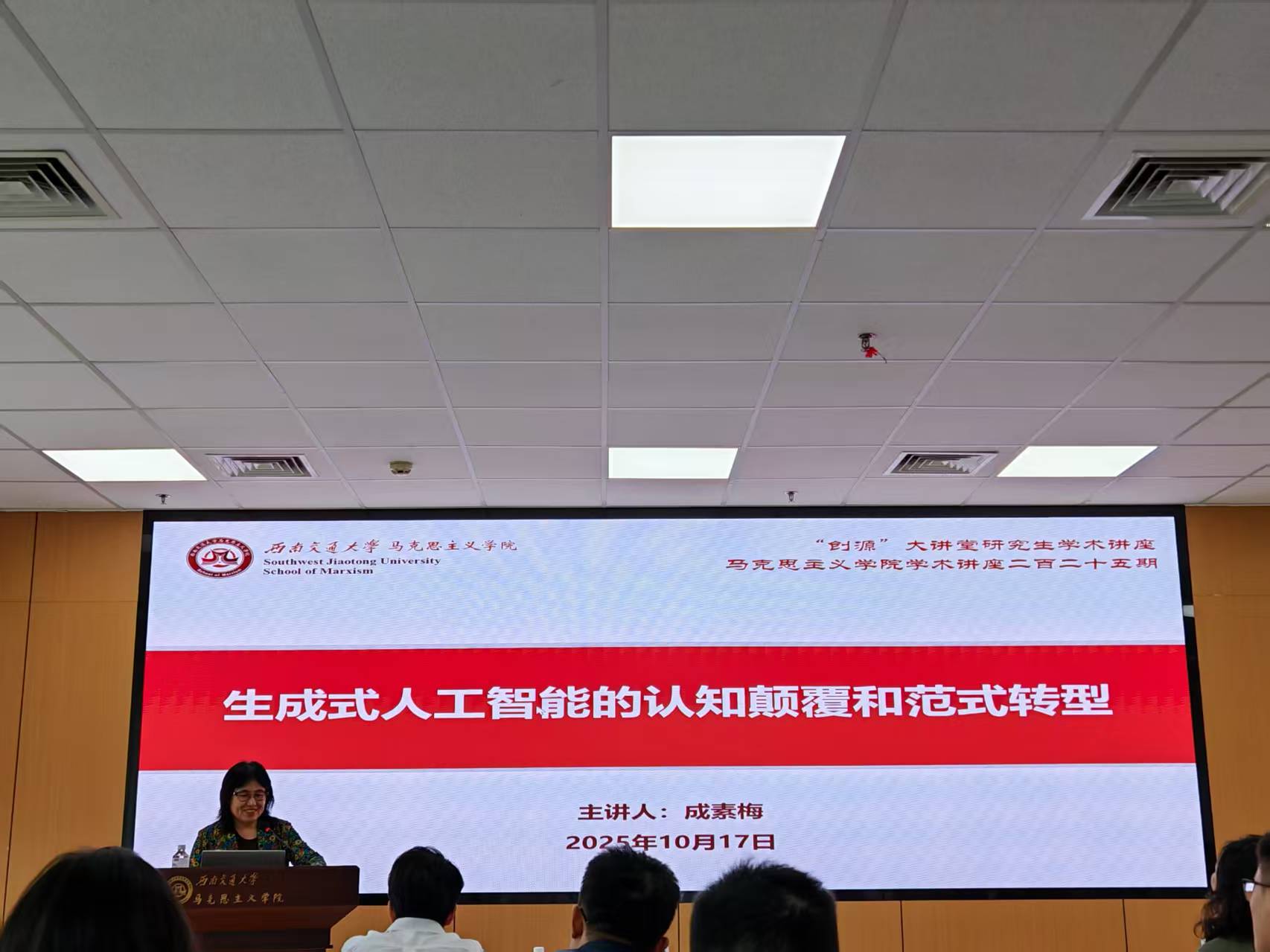 主办的“创源”大讲堂研究生第二百二十五期学术讲座在犀浦校区31325研讨室成功举办。上海社会科学院哲学研究所教授、《哲学分析》杂志主编成素梅应邀作“生成式AI的认知颠覆及范式转型”专题讲座。瓜子tv