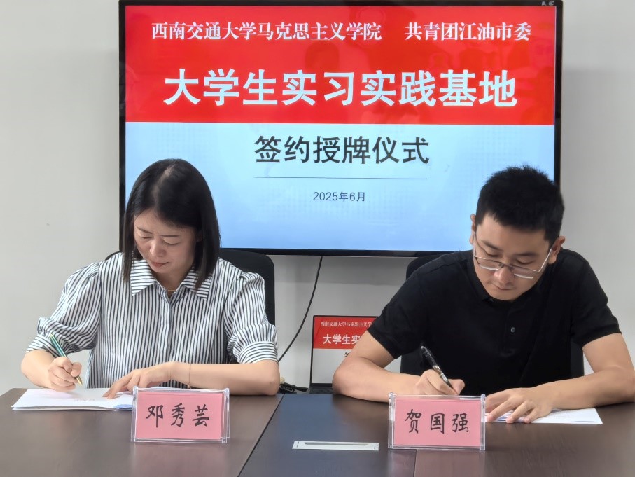 上午,学院与共青团江油市委举行了大学生实习实践基地签约授牌仪式。共青团江油市委书记贺国强,江油市委人才办相关负责人孟陶然,团市委办公室主任胡盼及工作人员杨舒婷,学院党委副书记邓秀芸,团委副书记、辅导员杜晓林,青年教师、学生科创班导师樊士帅,以及江油籍学生代表出席。