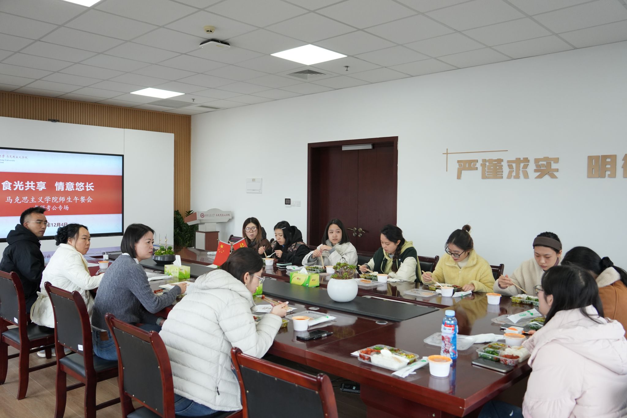 此次“食光共享 情意悠长”师生午餐会(考研考公专场),不仅是一次信息的传递、经验的分享,更是一次情感的凝聚、力量的汇聚。学院通过这样有温度、有深度的交流平台,将关爱融入学生成长的实际需求中,增强了学生的归属感、获得感与前行信心,为他们的升学就业之路注入了温暖而坚实的力量。