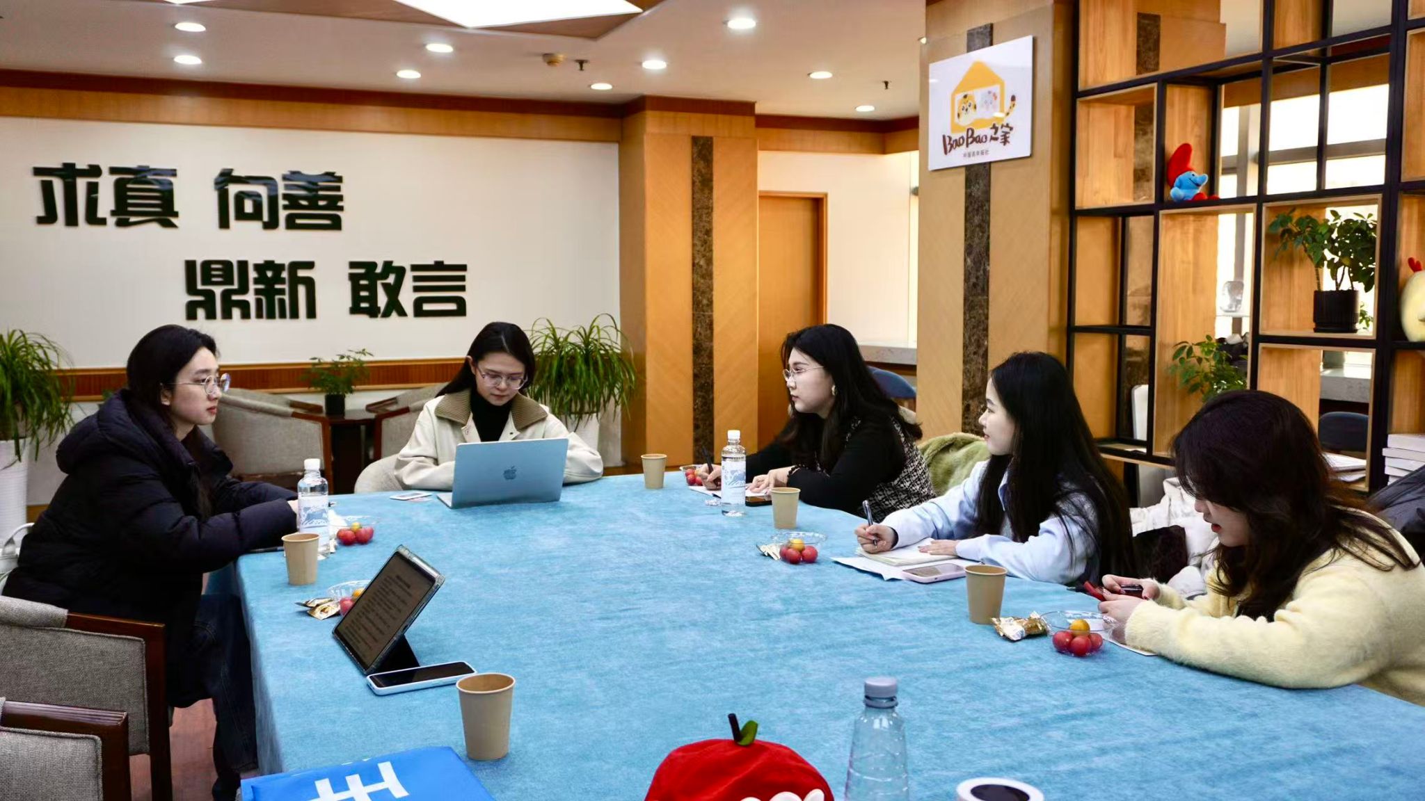 调研期间,团队访谈了中国青年报社编辑部记者李怡蒙,她结合采访北大红楼志愿者的经历分享了体会。她谈到,北大红楼作为党性教育重要阵地与党日活动热门场馆,志愿服务群体以青少年为主,不少学生在课业繁重情况下依然以高度责任感完成志愿讲解任务,对北大红楼的相关历史表现出浓厚兴趣。谈及《新青年》与当代媒体的传承与变革,她认为,百年前《新青年》是知识青年思想传播的主流载体,如今纸媒传播力虽有所变化,但引领青年、凝聚共识的价值使命始终未变。她建议同学们积极运用新媒体,用青年人喜闻乐见的表达方式传播红色文化,讲好中国故事,推动马克思主义理论以更鲜活的形态走进青年心中。